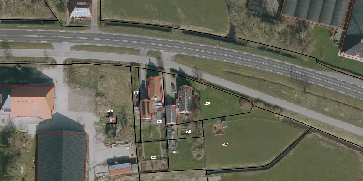 Het adres ligt op het perceel HWD00-F-477, dat zich in de kadastrale gemeente Holwerd bevindt. De gemiddelde perceelgrootte in Holwerd is 1,1 ha. Dit perceel is kleiner: de perceeloppervlakte bedraagt 953 m². Het grootste perceel in de kadastrale gemeente is 1,41 km². Het kleinste perceel heeft een oppervlakte van 0 m². Op het perceel bevinden zich geen andere adressen. In de Basisregistratie Kadaster (BRK) werden de grenzen van het perceel geregistreerd op 22-06-2005.