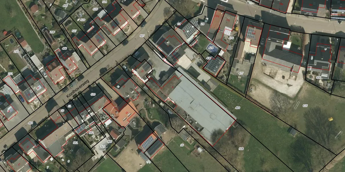 Koolhoverweg 9 is gelegen op kadastraal perceel SPV00K508. Deze kadastrale aanduiding is uniek en wordt gebruikt door het Kadaster om eigendomsrechten en andere zakelijke rechten vast te leggen. Het perceel maakt onderdeel uit van de kadastrale gemeente Simpelveld.