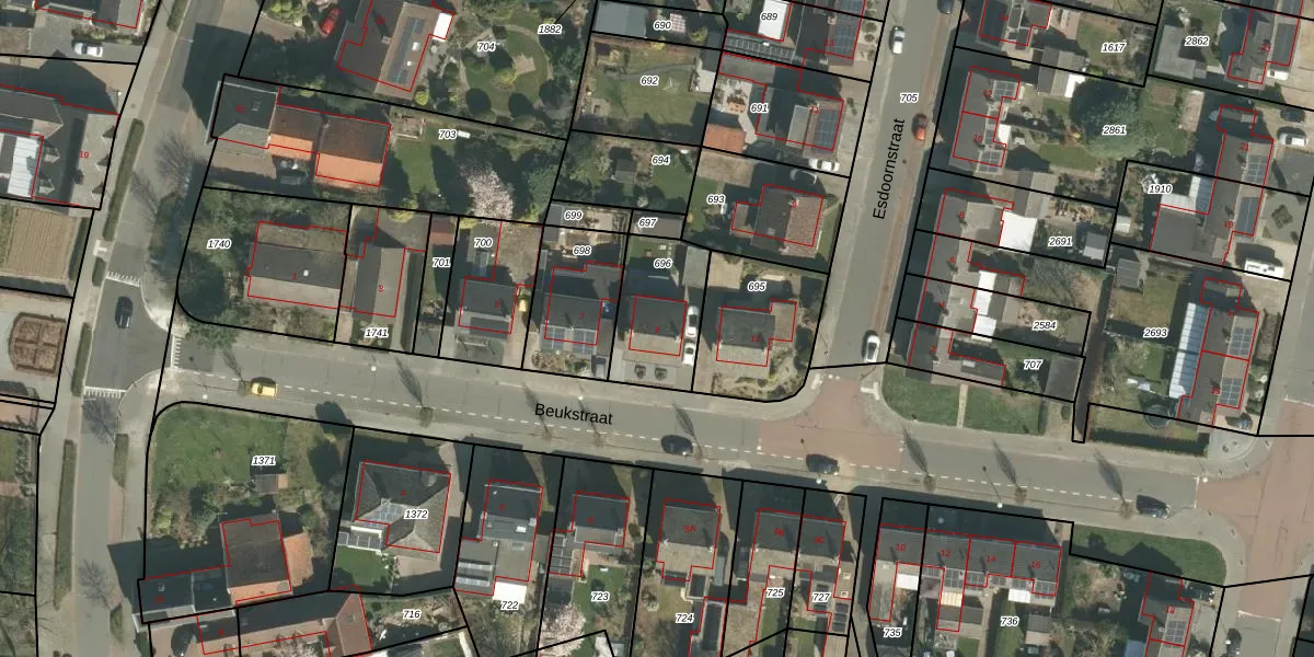 Beukstraat 9 is gelegen op kadastraal perceel ECH00M696. Deze kadastrale aanduiding is uniek en wordt gebruikt door het Kadaster om eigendomsrechten en andere zakelijke rechten vast te leggen. Het perceel maakt onderdeel uit van de kadastrale gemeente Echt.