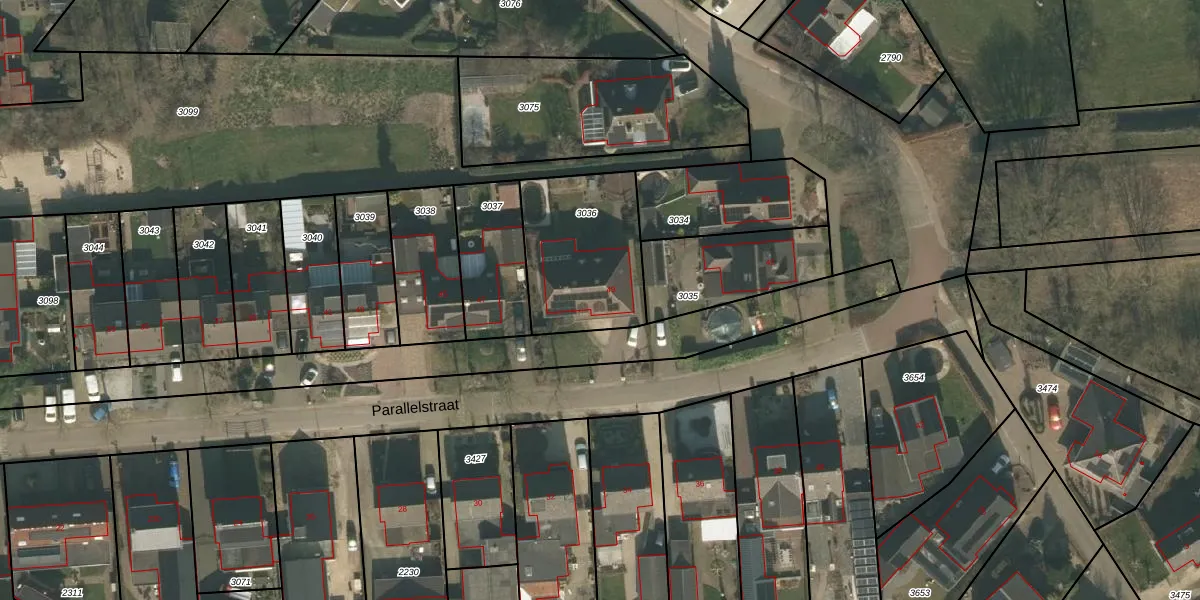 Parallelstraat 49 is gelegen op kadastraal perceel CUI00K3036. Deze kadastrale aanduiding is uniek en wordt gebruikt door het Kadaster om eigendomsrechten en andere zakelijke rechten vast te leggen. Het perceel maakt onderdeel uit van de kadastrale gemeente Cuijk.