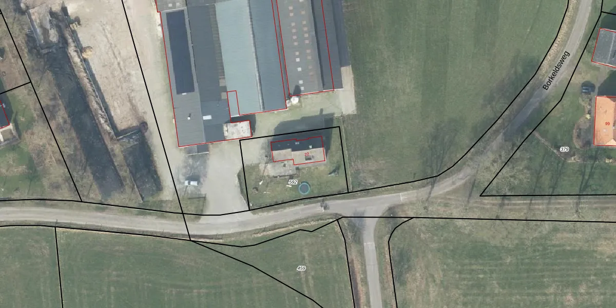 Borkeldsweg 22 is gelegen op kadastraal perceel RSN01M592. Deze kadastrale aanduiding is uniek en wordt gebruikt door het Kadaster om eigendomsrechten en andere zakelijke rechten vast te leggen. Het perceel maakt onderdeel uit van de kadastrale gemeente Rijssen.