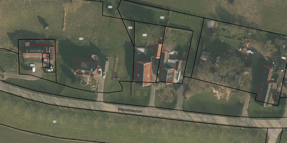 Erlecomsedam 13 is gelegen op kadastraal perceel OOI00F112. Deze kadastrale aanduiding is uniek en wordt gebruikt door het Kadaster om eigendomsrechten en andere zakelijke rechten vast te leggen. Het perceel maakt onderdeel uit van de kadastrale gemeente Ooij.