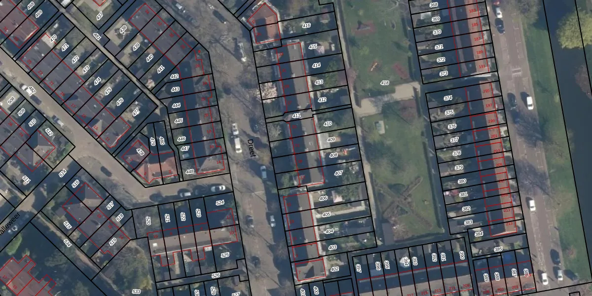 Het perceel waarop Dreef 21 staat heeft een oppervlakte van 162 m². Dit is een middelgroot perceel. De perceeloppervlakte wordt geregistreerd door het Kadaster. Gedetailleerde informatie over de maten van dit perceel kunt u vinden in het rapport Kadastrale kaart met maatvoering van Dreef 21.