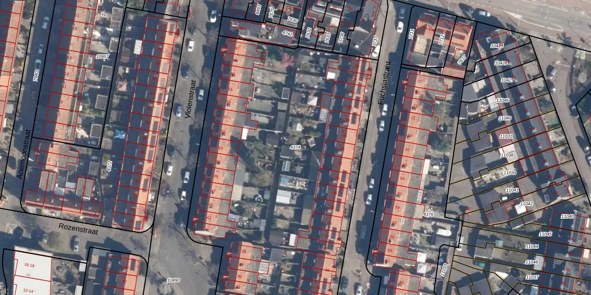 Gebruik de zoekbalk of klik op een perceel om informatie over het perceel te bekijken.