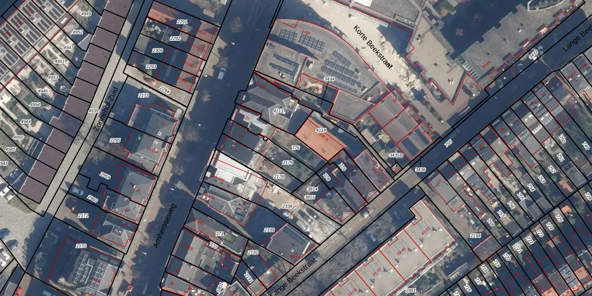 Gebruik de zoekbalk of klik op een perceel om informatie over het perceel te bekijken.