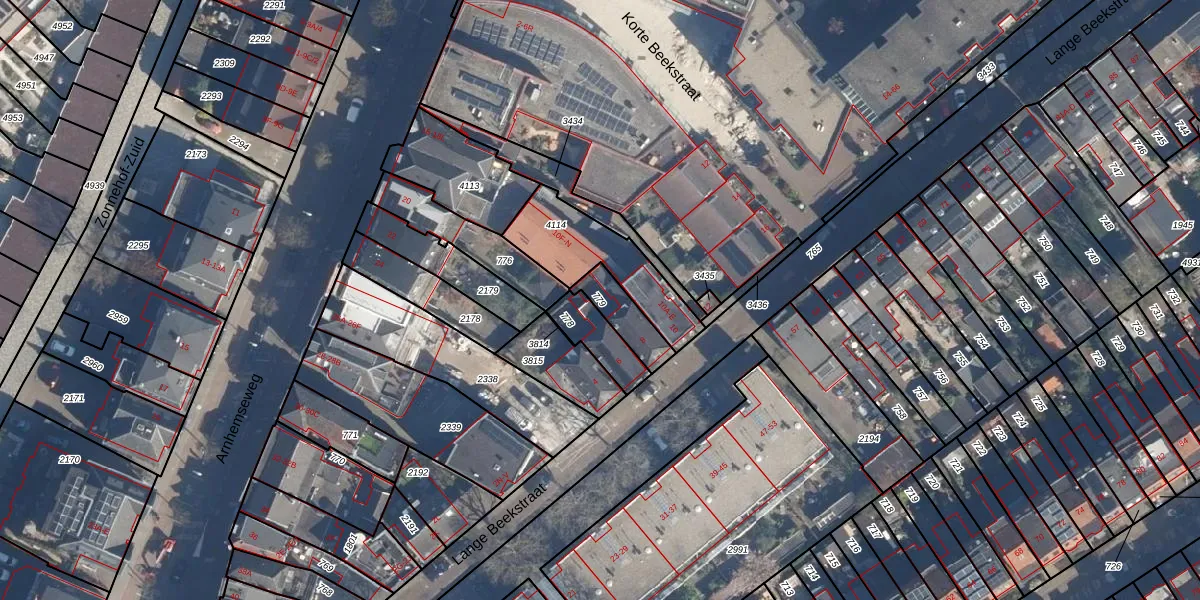 Gebruik de zoekbalk of klik op een perceel om informatie over het perceel te bekijken.