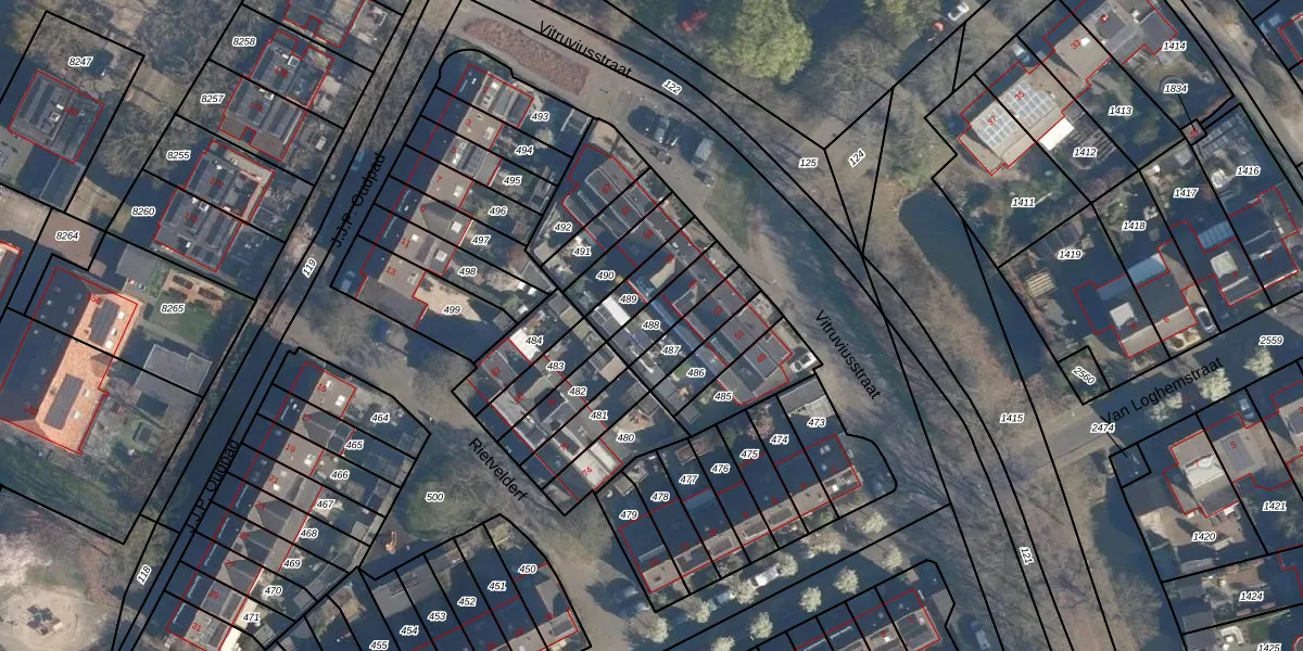 Gebruik de zoekbalk of klik op een perceel om informatie over het perceel te bekijken.