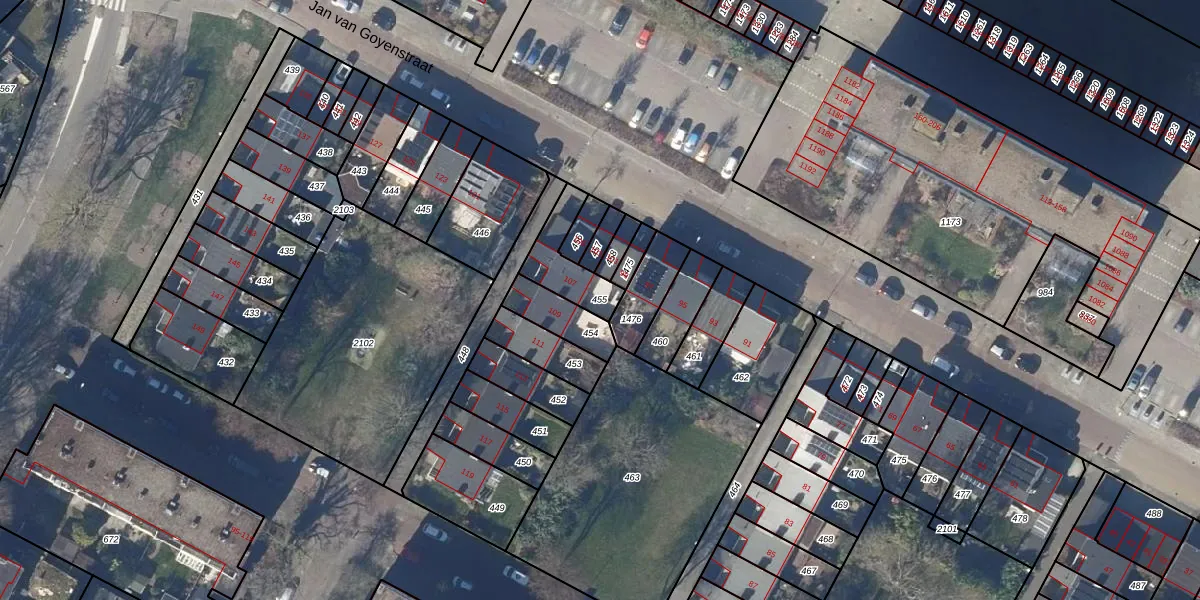 Gebruik de zoekbalk of klik op een perceel om informatie over het perceel te bekijken.