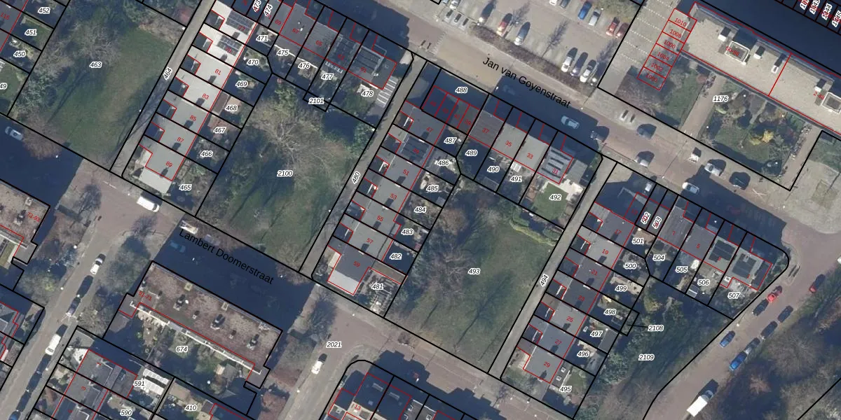 Gebruik de zoekbalk of klik op een perceel om informatie over het perceel te bekijken.