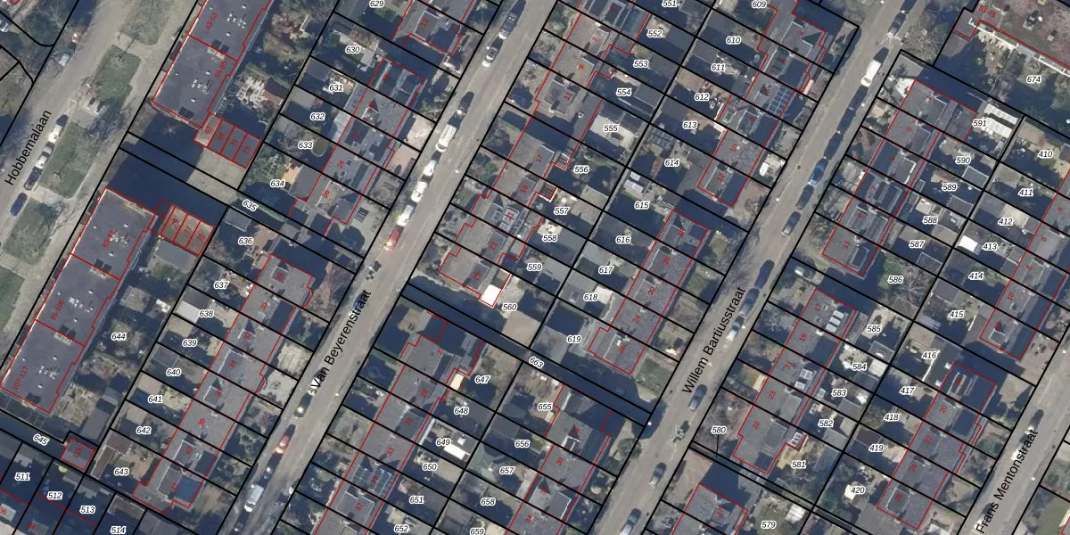 Gebruik de zoekbalk of klik op een perceel om informatie over het perceel te bekijken.