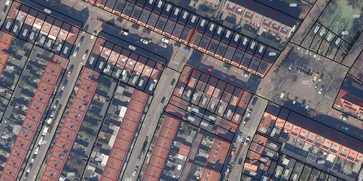 Gebruik de zoekbalk of klik op een perceel om informatie over het perceel te bekijken.