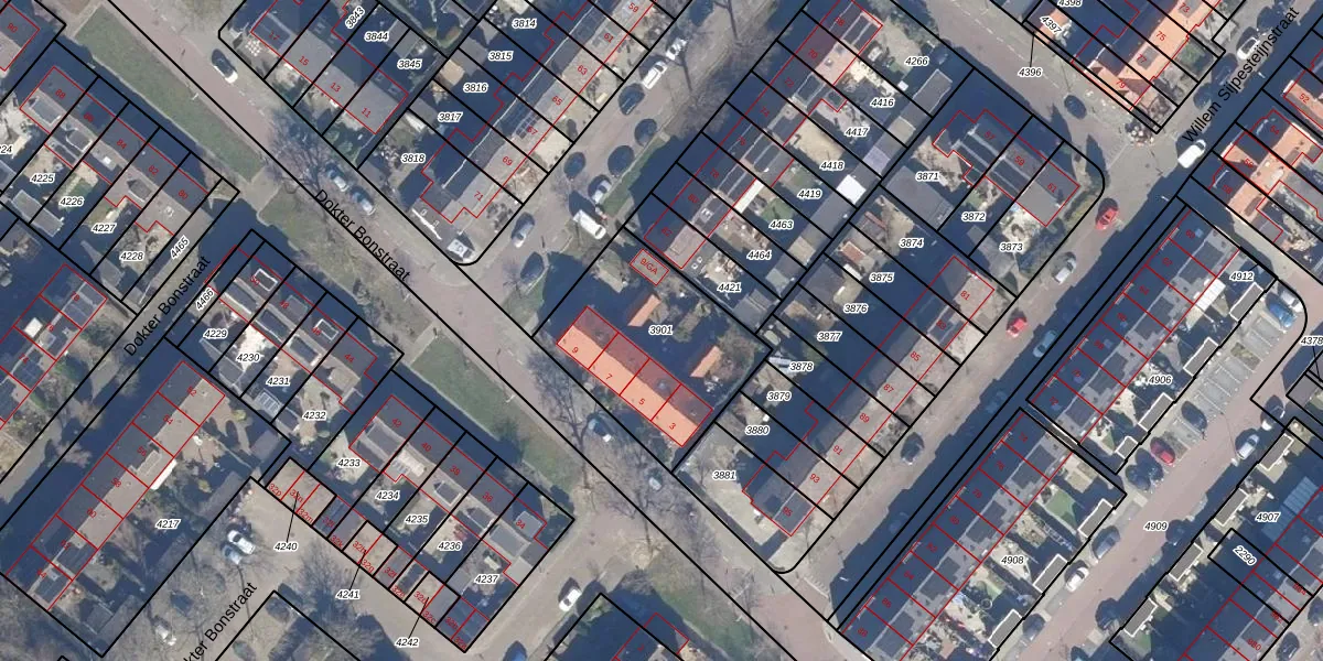 Gebruik de zoekbalk of klik op een perceel om informatie over het perceel te bekijken.