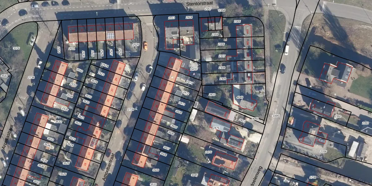 Gebruik de zoekbalk of klik op een perceel om informatie over het perceel te bekijken.
