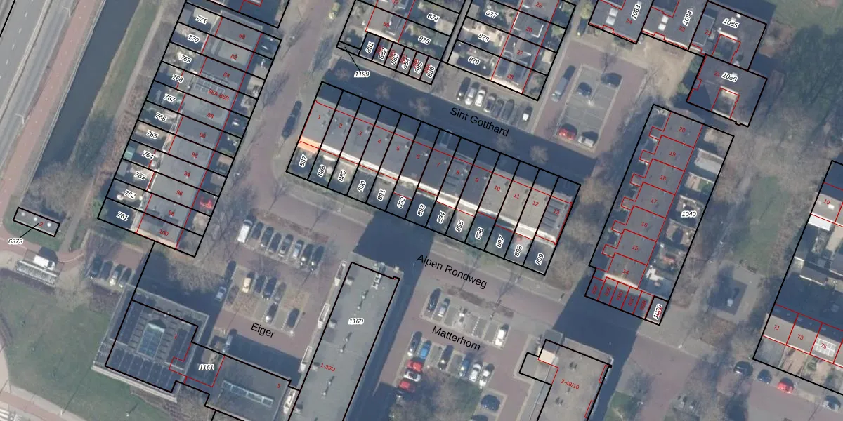 Gebruik de zoekbalk of klik op een perceel om informatie over het perceel te bekijken.