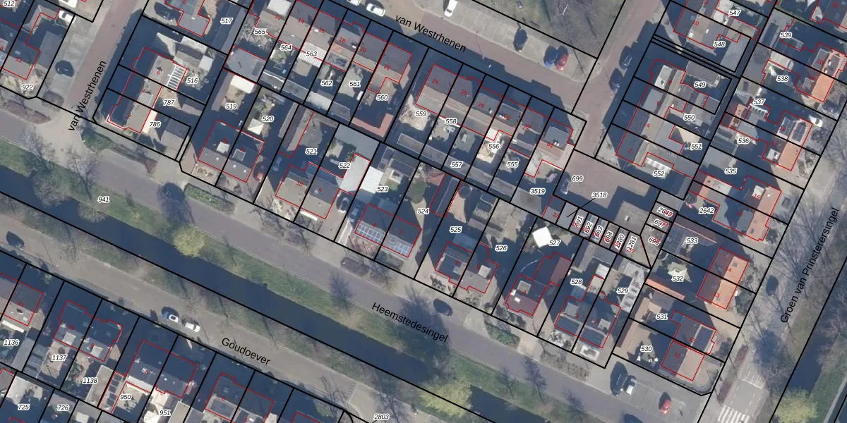 Gebruik de zoekbalk of klik op een perceel om informatie over het perceel te bekijken.