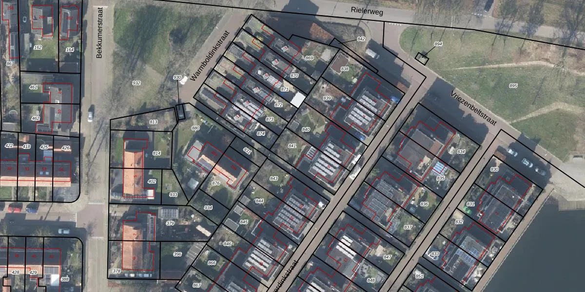 Gebruik de zoekbalk of klik op een perceel om informatie over het perceel te bekijken.