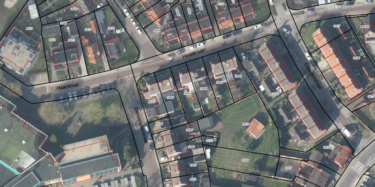 Gebruik de zoekbalk of klik op een perceel om informatie over het perceel te bekijken.