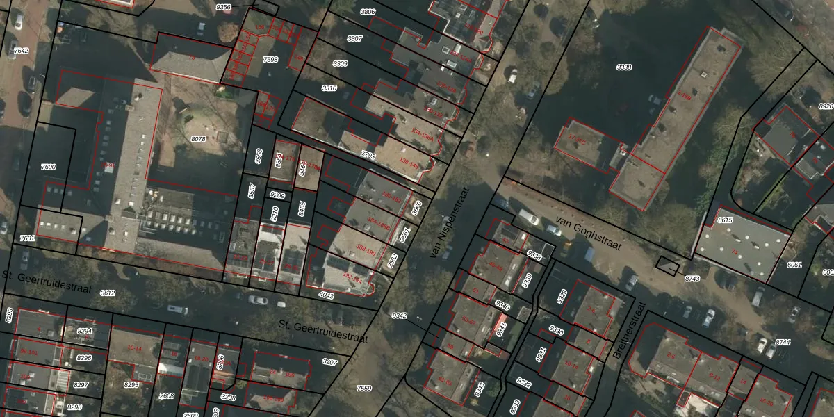 Gebruik de zoekbalk of klik op een perceel om informatie over het perceel te bekijken.