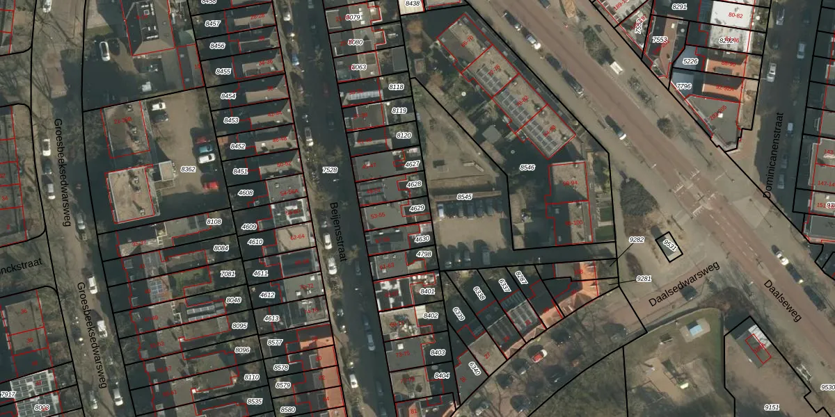 Gebruik de zoekbalk of klik op een perceel om informatie over het perceel te bekijken.