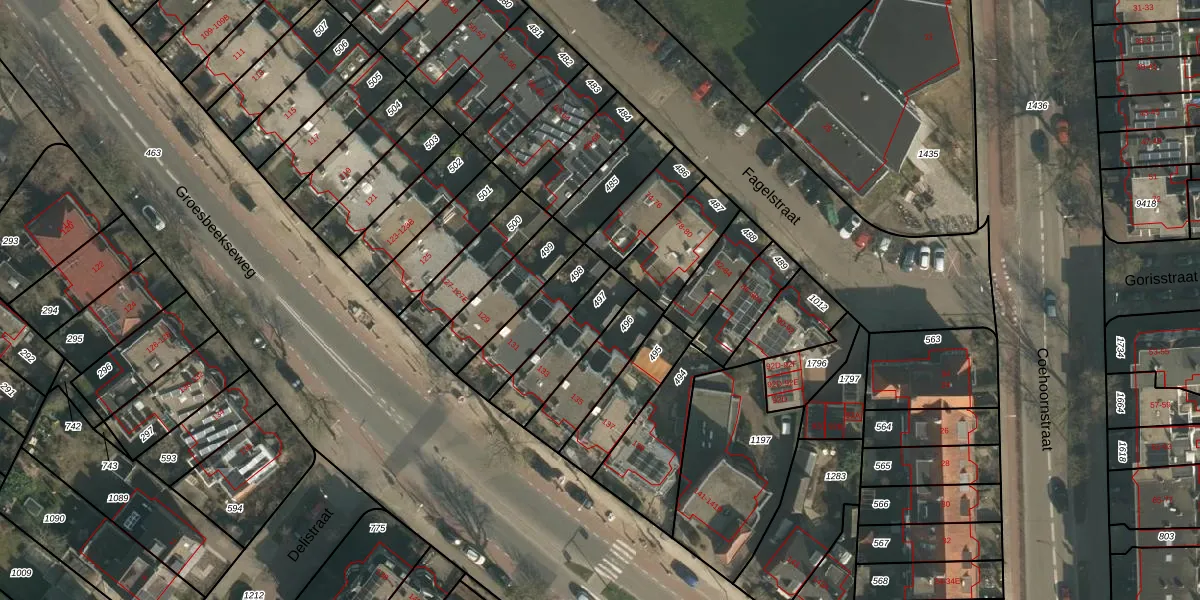 Gebruik de zoekbalk of klik op een perceel om informatie over het perceel te bekijken.