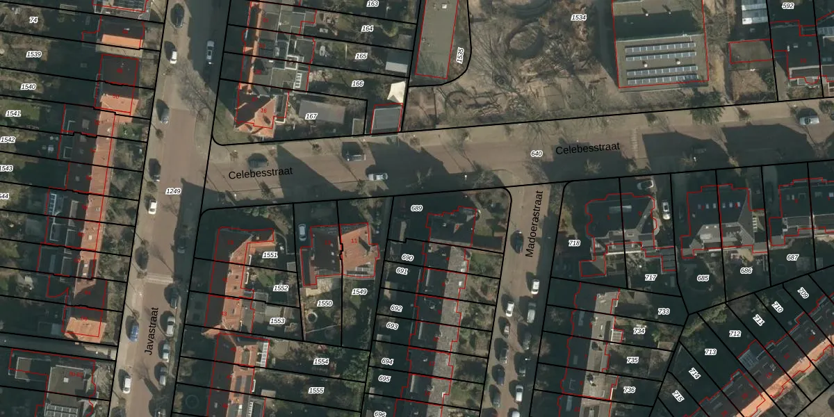 Gebruik de zoekbalk of klik op een perceel om informatie over het perceel te bekijken.