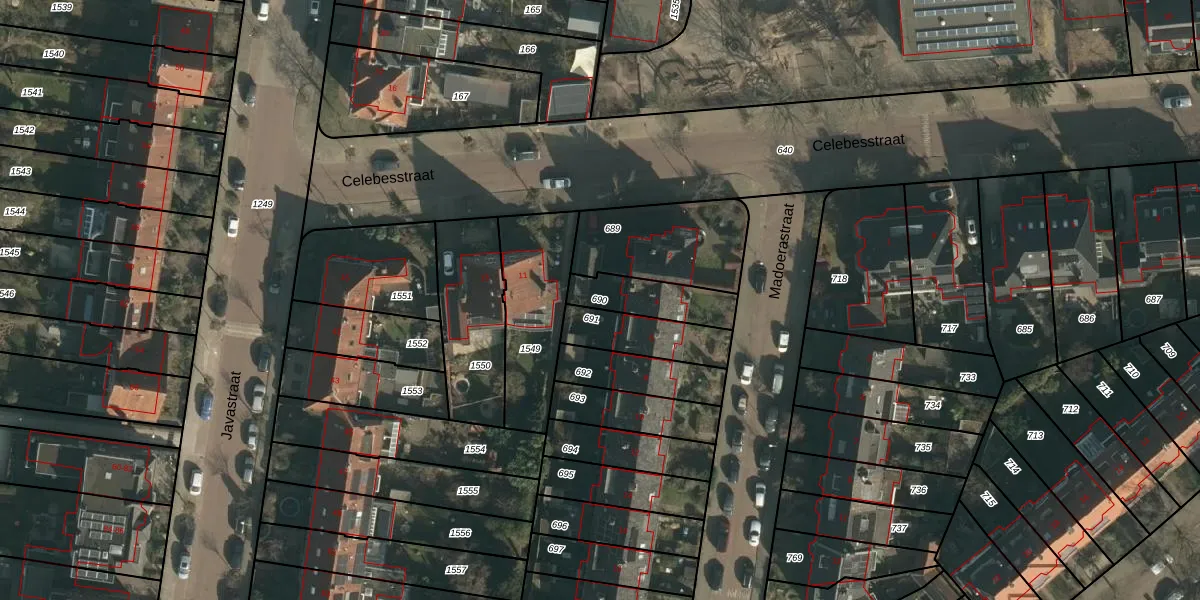 Gebruik de zoekbalk of klik op een perceel om informatie over het perceel te bekijken.