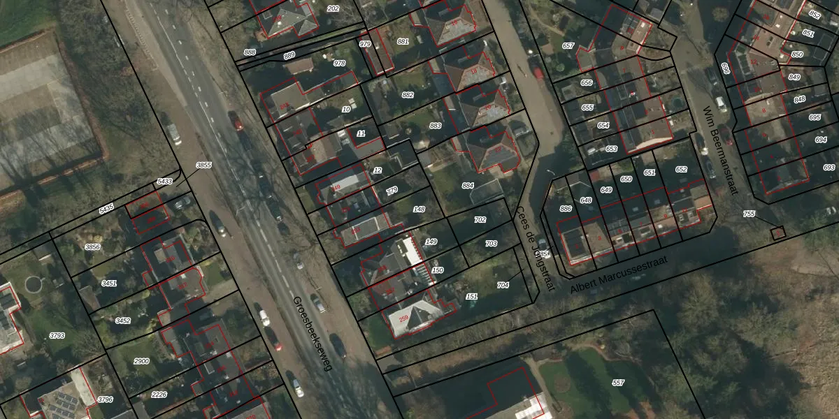 Gebruik de zoekbalk of klik op een perceel om informatie over het perceel te bekijken.