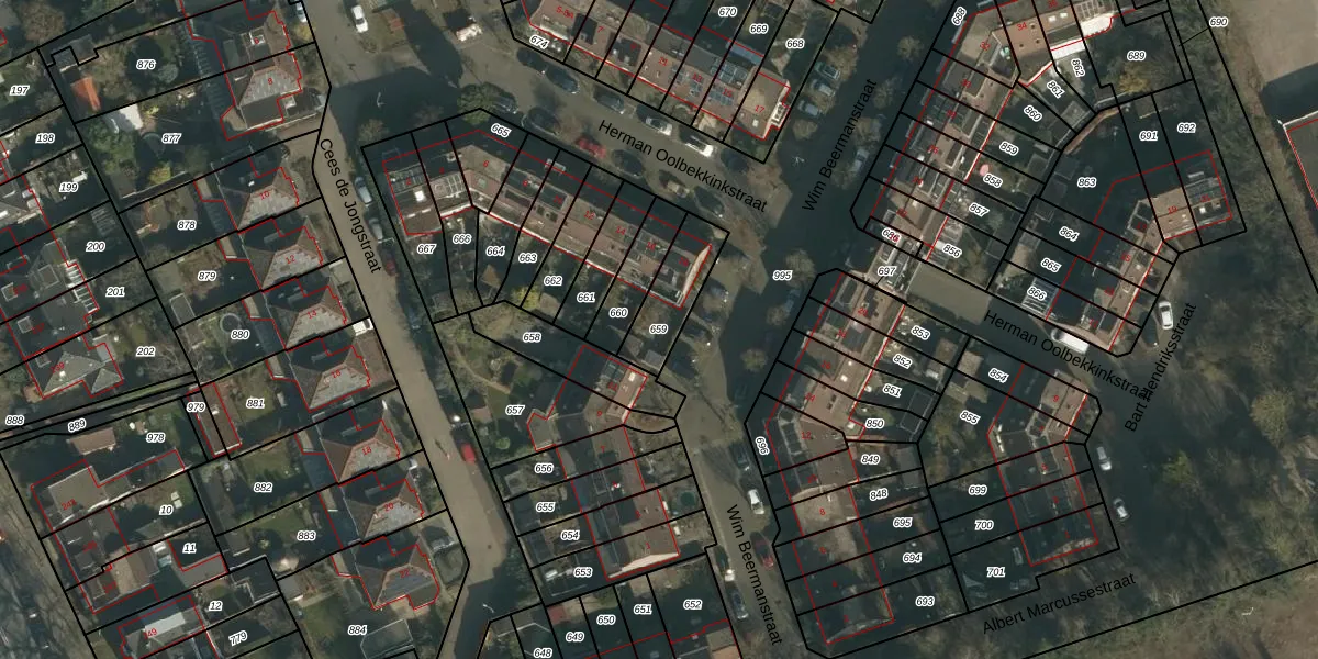 Gebruik de zoekbalk of klik op een perceel om informatie over het perceel te bekijken.