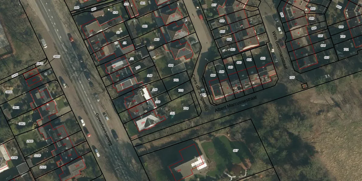Gebruik de zoekbalk of klik op een perceel om informatie over het perceel te bekijken.