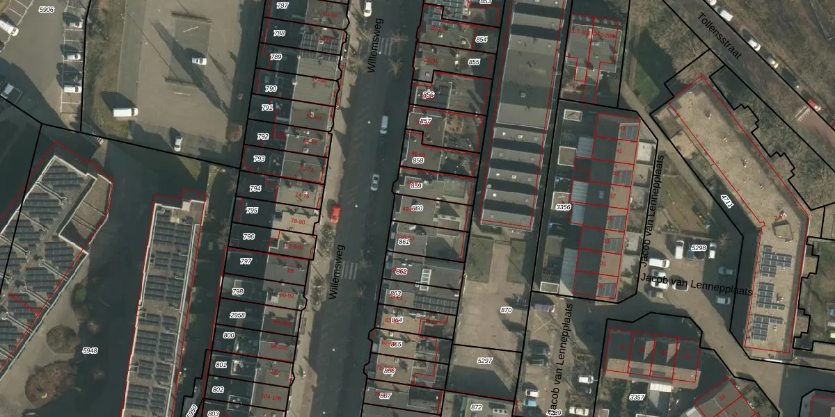 Gebruik de zoekbalk of klik op een perceel om informatie over het perceel te bekijken.