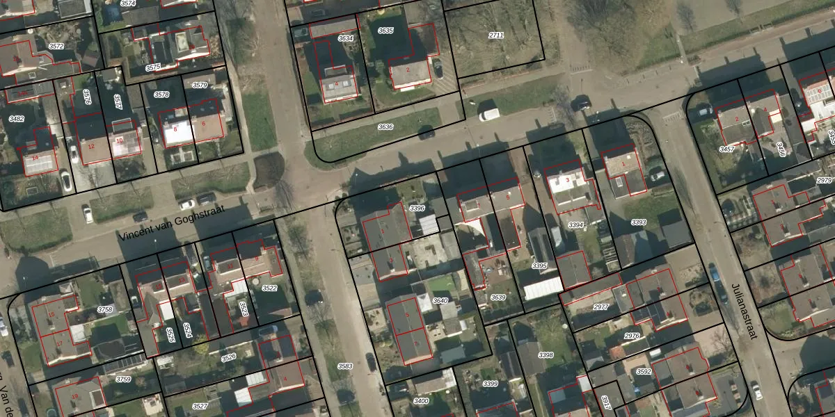 Gebruik de zoekbalk of klik op een perceel om informatie over het perceel te bekijken.