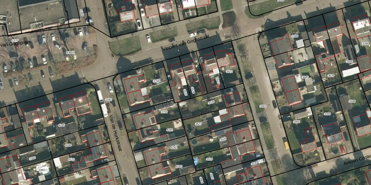 Gebruik de zoekbalk of klik op een perceel om informatie over het perceel te bekijken.