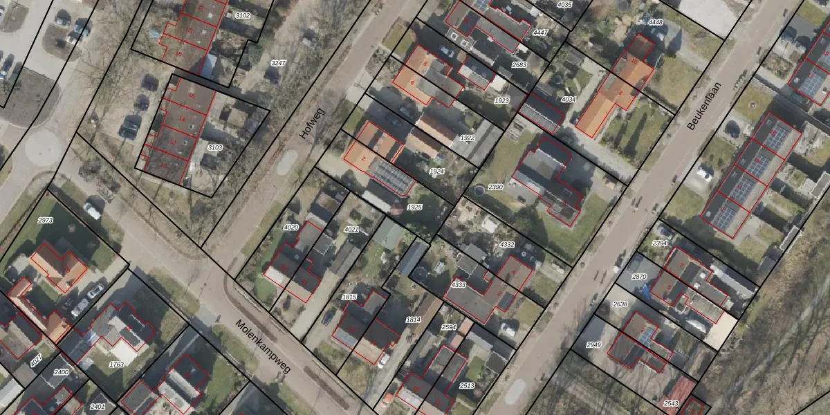 Gebruik de zoekbalk of klik op een perceel om informatie over het perceel te bekijken.