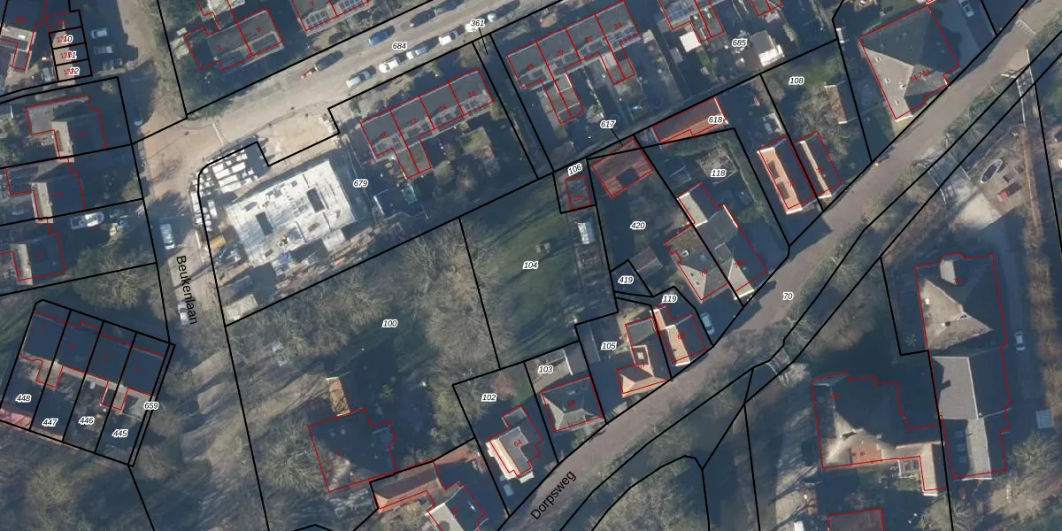 Gebruik de zoekbalk of klik op een perceel om informatie over het perceel te bekijken.