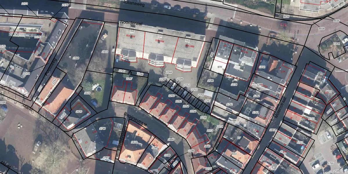 Gebruik de zoekbalk of klik op een perceel om informatie over het perceel te bekijken.