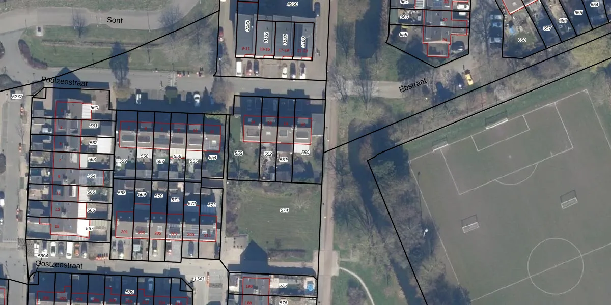 Gebruik de zoekbalk of klik op een perceel om informatie over het perceel te bekijken.
