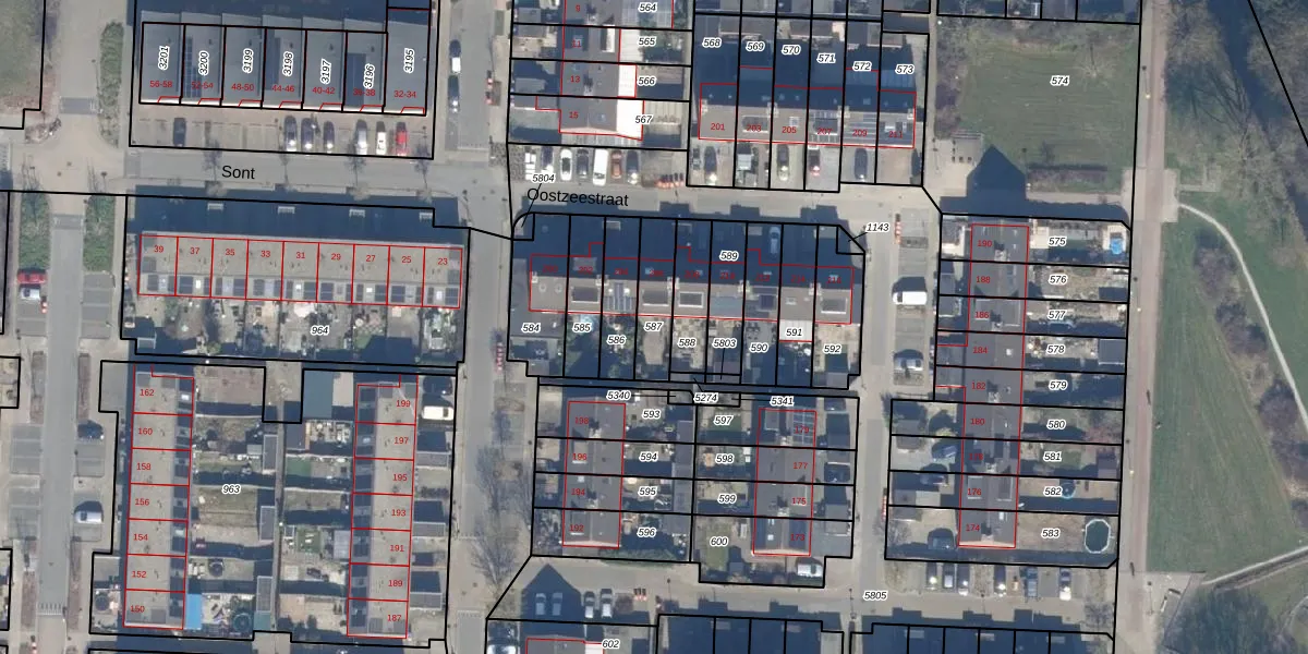Gebruik de zoekbalk of klik op een perceel om informatie over het perceel te bekijken.