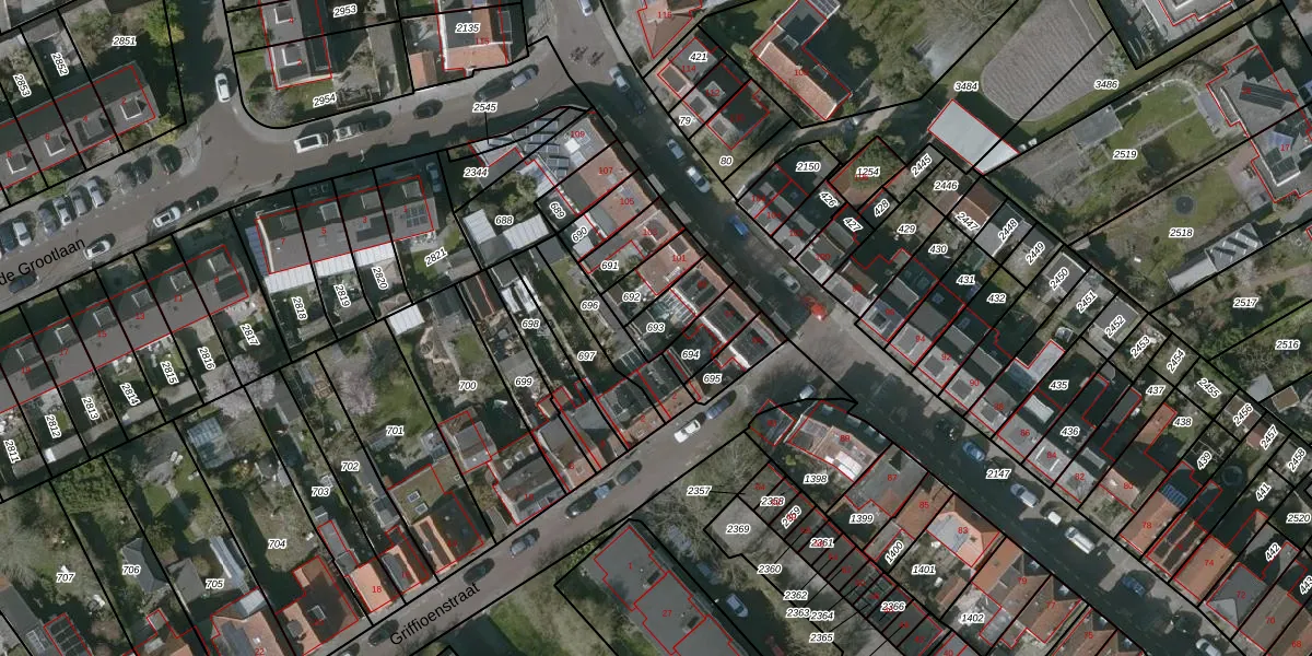 Gebruik de zoekbalk of klik op een perceel om informatie over het perceel te bekijken.