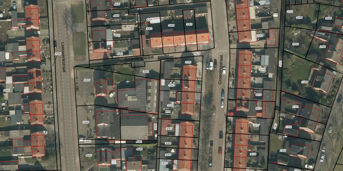Gebruik de zoekbalk of klik op een perceel om informatie over het perceel te bekijken.