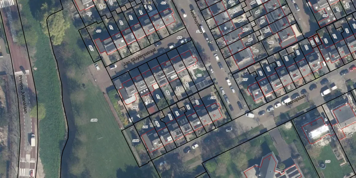 Gebruik de zoekbalk of klik op een perceel om informatie over het perceel te bekijken.