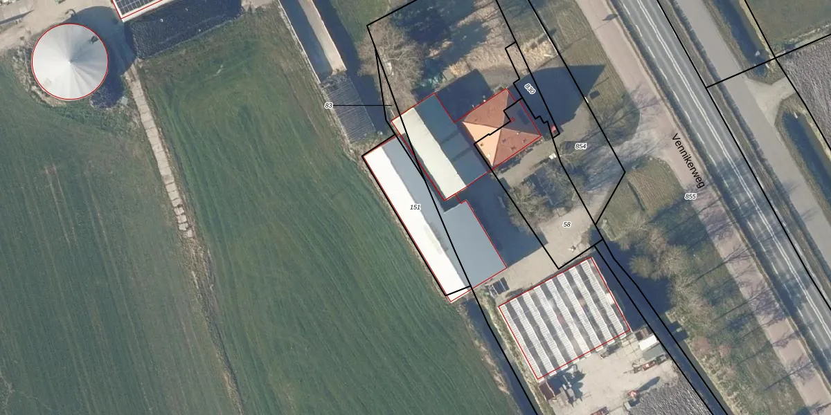 Gebruik de zoekbalk of klik op een perceel om informatie over het perceel te bekijken.