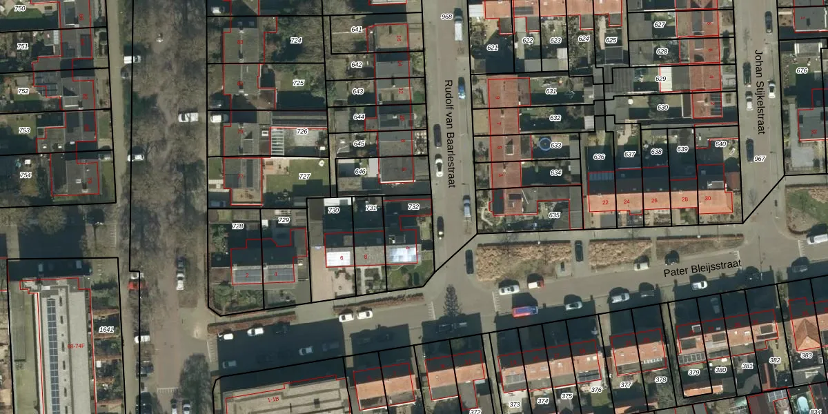 Gebruik de zoekbalk of klik op een perceel om informatie over het perceel te bekijken.