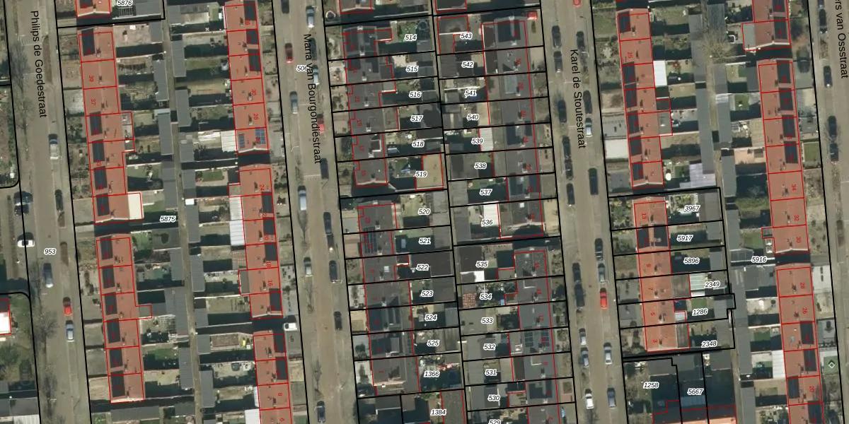 Gebruik de zoekbalk of klik op een perceel om informatie over het perceel te bekijken.