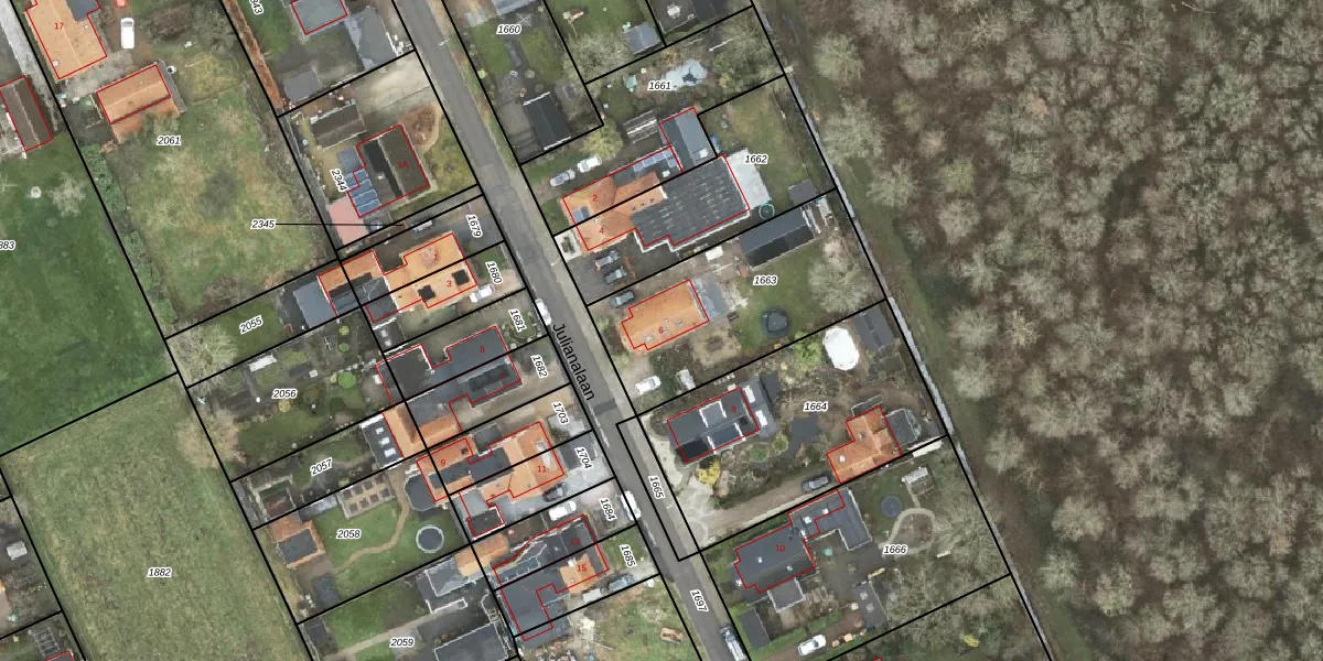 Het perceel waarop Julianalaan 6 staat heeft een oppervlakte van 750 m². Dit is een groot perceel. De perceeloppervlakte wordt geregistreerd door het Kadaster. Gedetailleerde informatie over de maten van dit perceel kunt u vinden in het rapport Kadastrale kaart met maatvoering van Julianalaan 6.