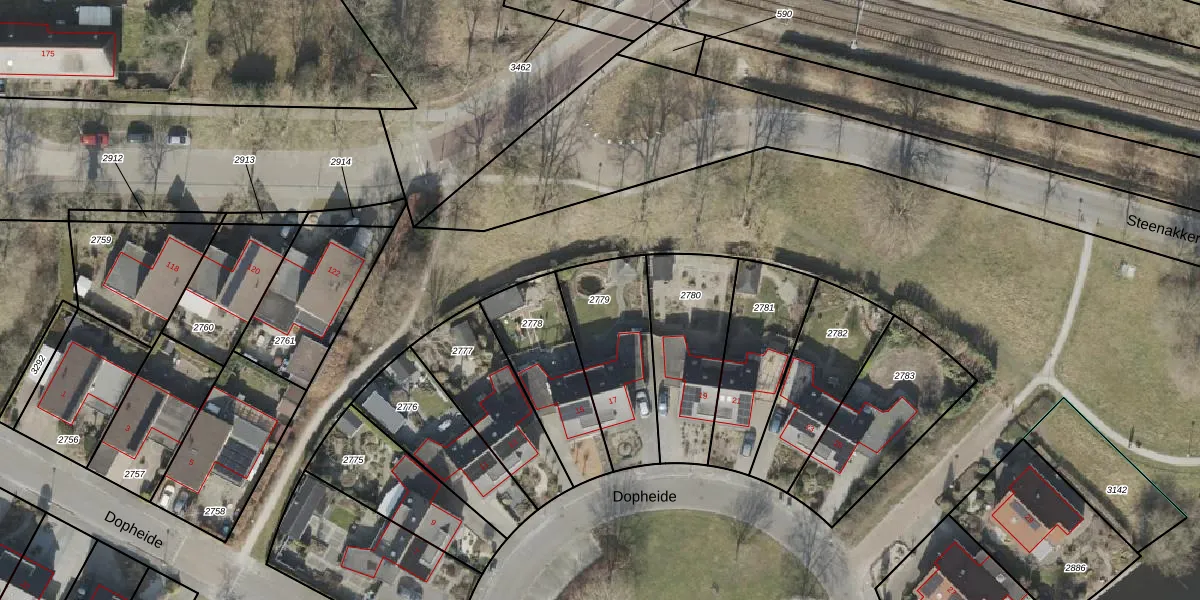 Gebruik de zoekbalk of klik op een perceel om informatie over het perceel te bekijken.