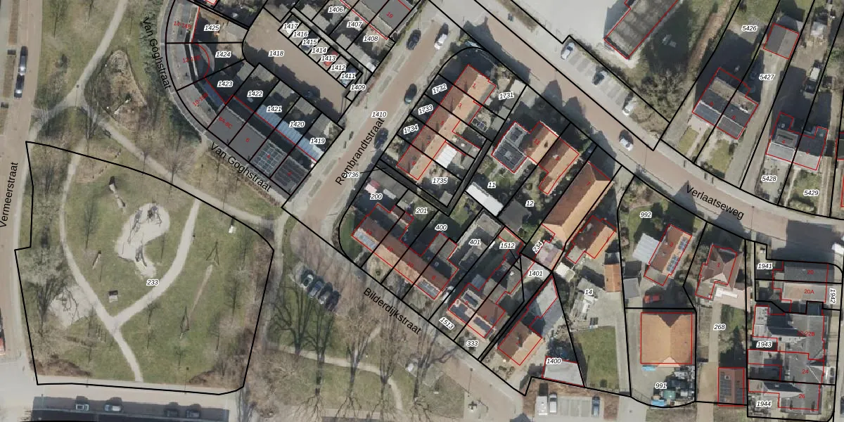Gebruik de zoekbalk of klik op een perceel om informatie over het perceel te bekijken.