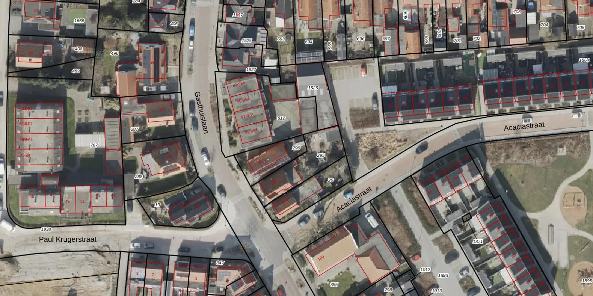 Gebruik de zoekbalk of klik op een perceel om informatie over het perceel te bekijken.
