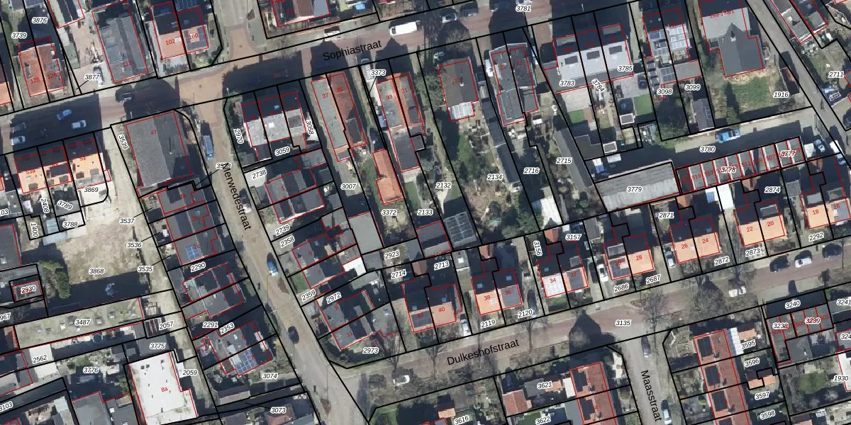 Gebruik de zoekbalk of klik op een perceel om informatie over het perceel te bekijken.