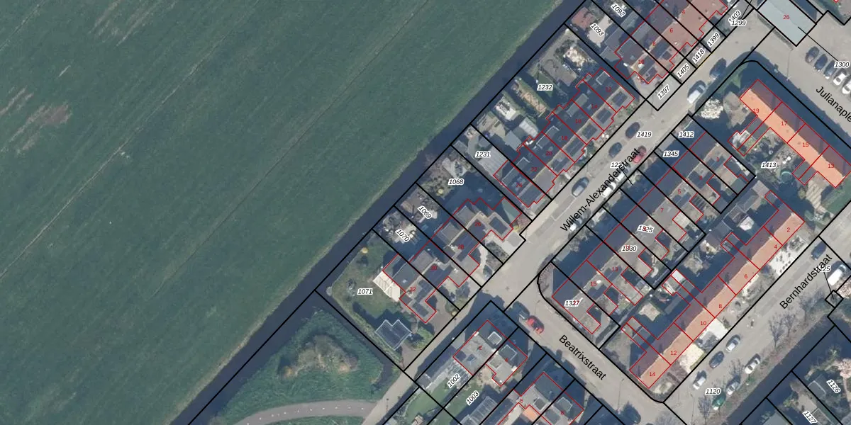Gebruik de zoekbalk of klik op een perceel om informatie over het perceel te bekijken.