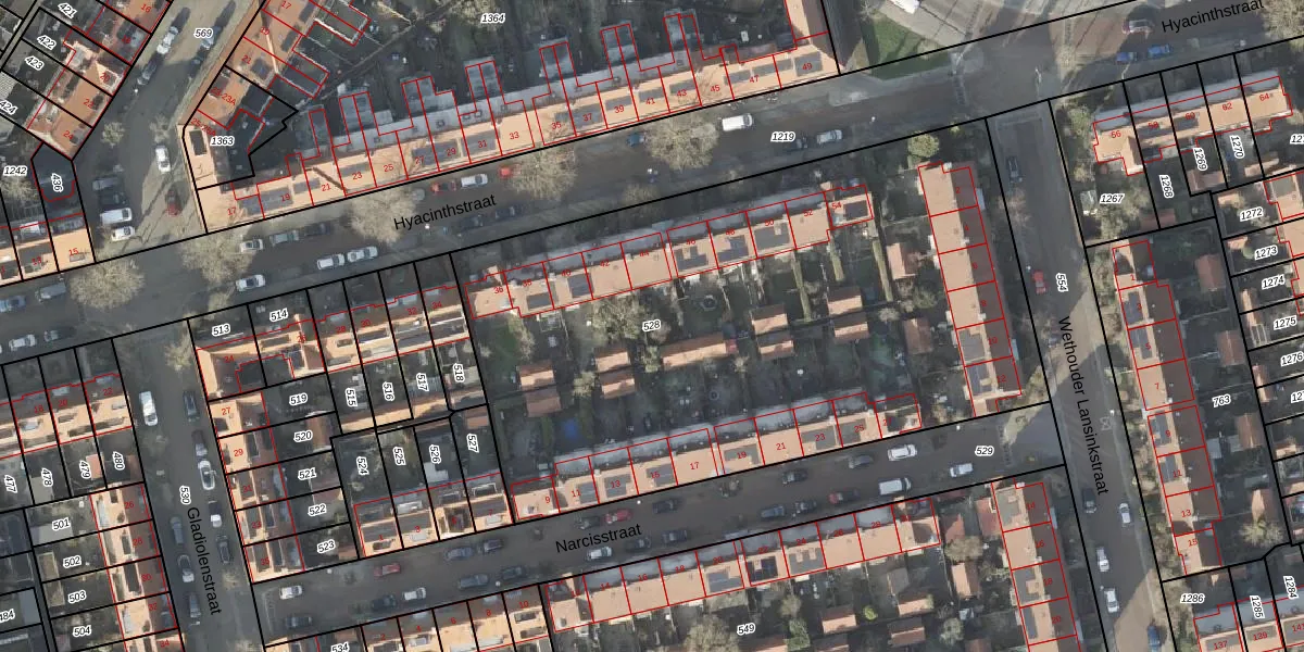 Gebruik de zoekbalk of klik op een perceel om informatie over het perceel te bekijken.